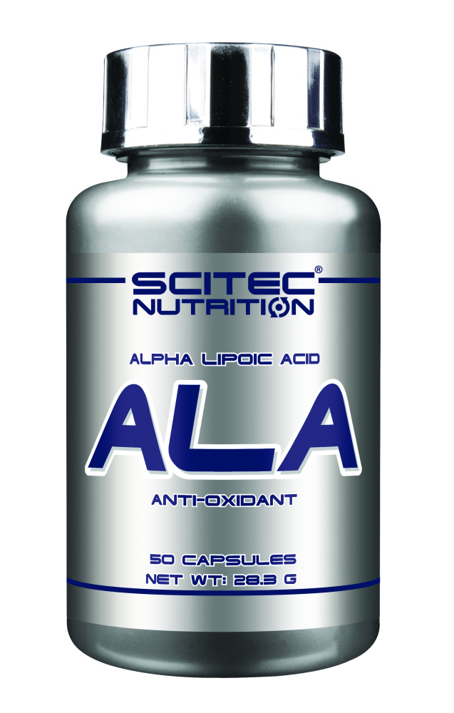 В одной капсуле Scitec Nutrition ALA (-lipoic acid-) содержится 250 мг вещества.
