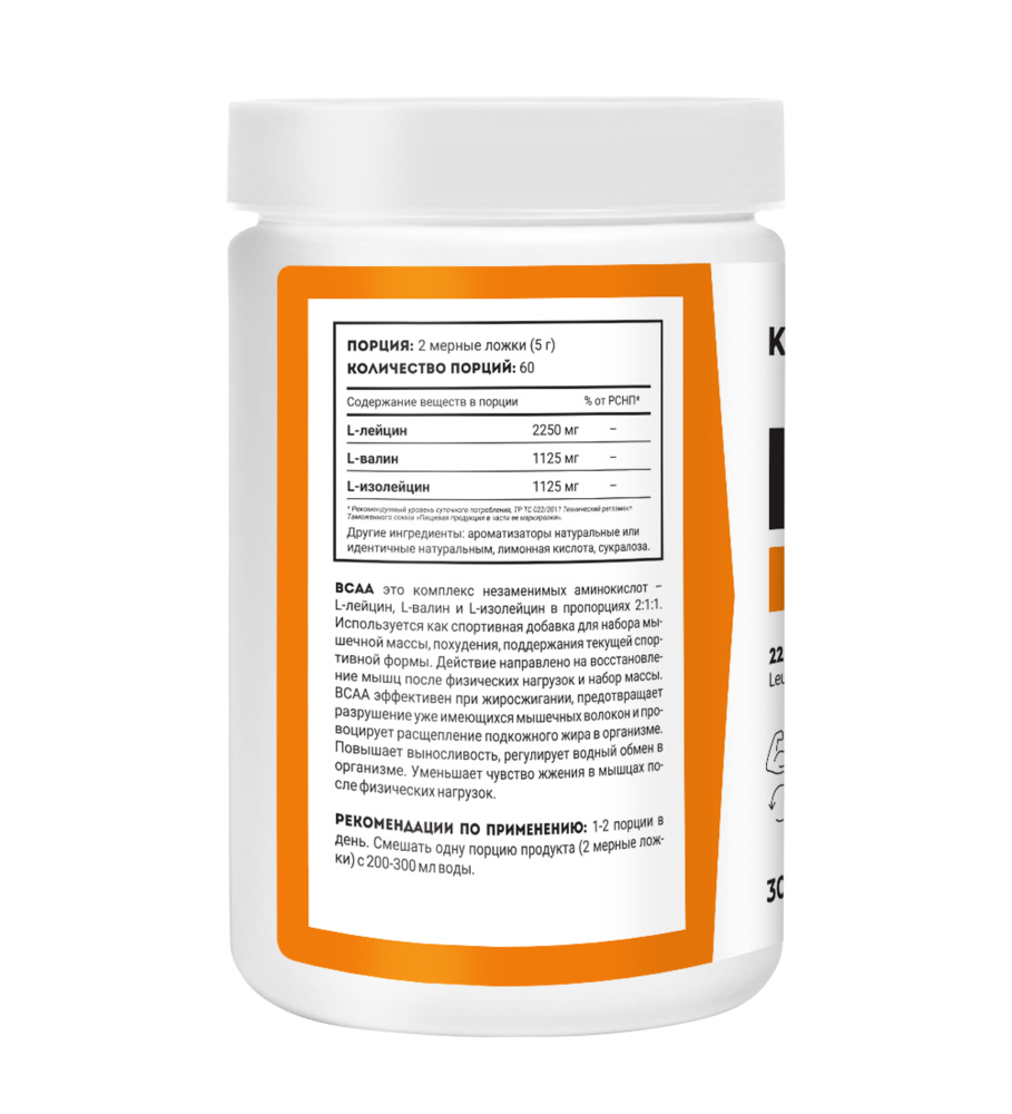 100% BCAA КУЛЬТЛАБ - это кристально чистые порошковые Л-аминоксилоты БЦАА в соотношении 2:1:1 (Л-лейцин, Л-валин, Л-изолейцин).