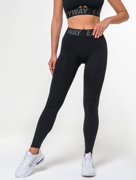Леггинсы с высокой посадкой в классическом черном варианте. Выразительный акцент – широкая брендированная резинка на талии в сочетании с конструктивно-декоративными линиями, имитирующими форму бикини. Эластичное и мягкое полотно плотно прилегает к коже, но не сдавливает ее. Такая модель станет незаменимым атрибутом как спортивного, так и повседневного гардероба.