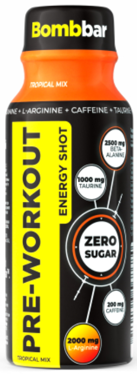 Встречайте новинку от Bombbar - жидкий предтрен в формате шота. Предтренировочный комплекс не нужно разводить в шейкере, его удобно брать с собой - маленькая бутылочка не занимает много места в сумке.
