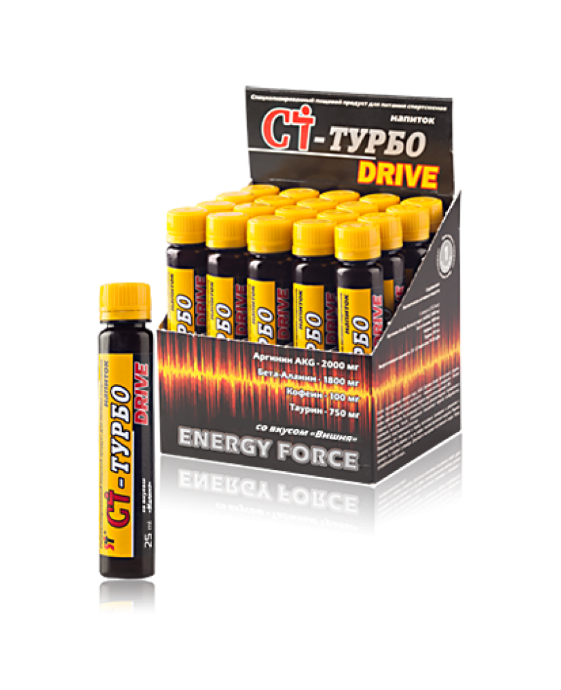 Кофеин и таурин в составе СТ-Турбо DRIVE оказывают тонизирующий эффект, стимулируют выработку адреналина, улучшают концентрацию внимания и силовые показатели. Другим важным свойством этих веществ является ускорение процессов жирового обмена и преобразование жирных кислот в энергию, необходимую для тренировок.