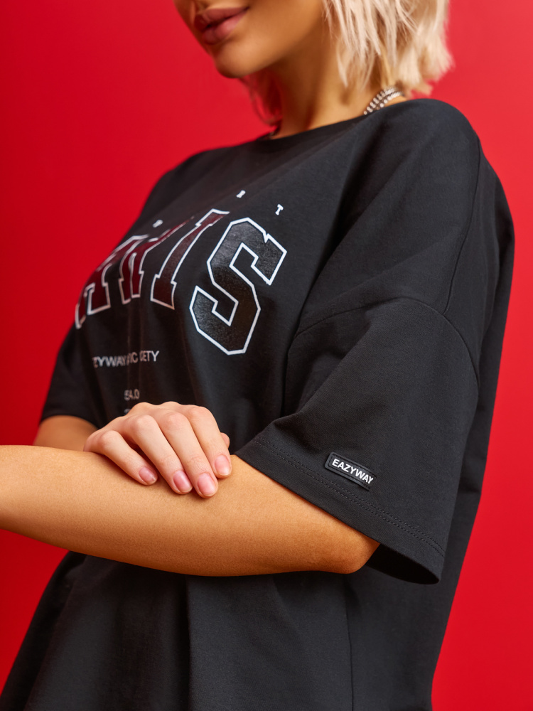 Трендовая футболка с умеренным оверсайз и стильным глянцевым принтом PARIS от дизайн-бюро EAZYWAY. Универсальная модель, которая подойдет как для спортивных, так и для повседневных образов – носите футболку с жакетами, бомберами, юбками или джинсами. Футболка отлично садится на любой тип фигуры. Мягкое хлопковое полотно премиум качества и эластичная печать безупречно сохраняют форму и цвет спустя множество стирок.
