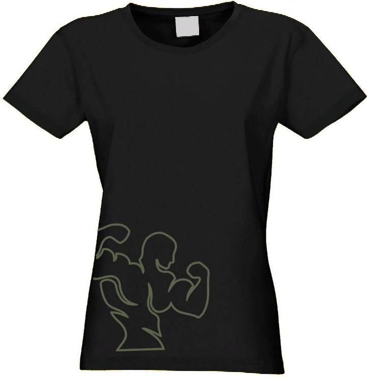 Kultlab Футболка женская с зелёным контурным логотипом на боку, чёрная