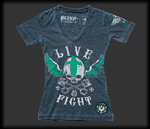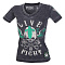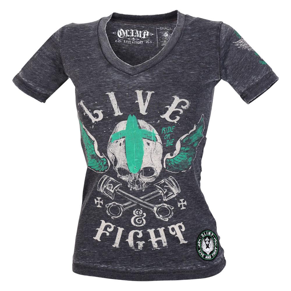 Женская футболка с V-образным вырезом, изготовленная из чрезвычайно мягкой ткани с выгоревшим эффектом. Искусственно состаренные рисунки спереди и сзади, вышивки и нашивки на рукавах.