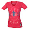 Женская футболка с V-образным вырезом, изготовленная из чрезвычайно мягкой ткани с выгоревшим эффектом. Искусственно состаренные рисунки спереди и сзади, вышивки и нашивки на рукавах.