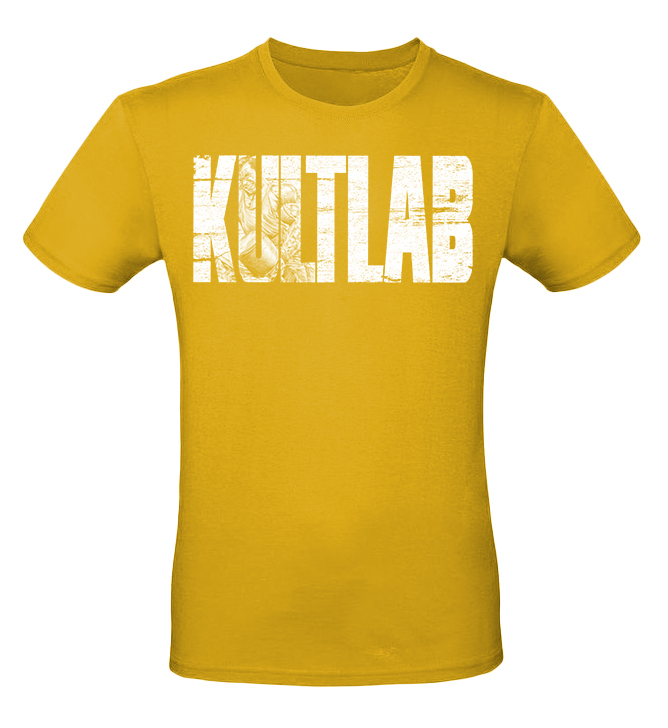 Kultlab Футболка мужская Бодибилдер (белый логотип), жёлтая - белая