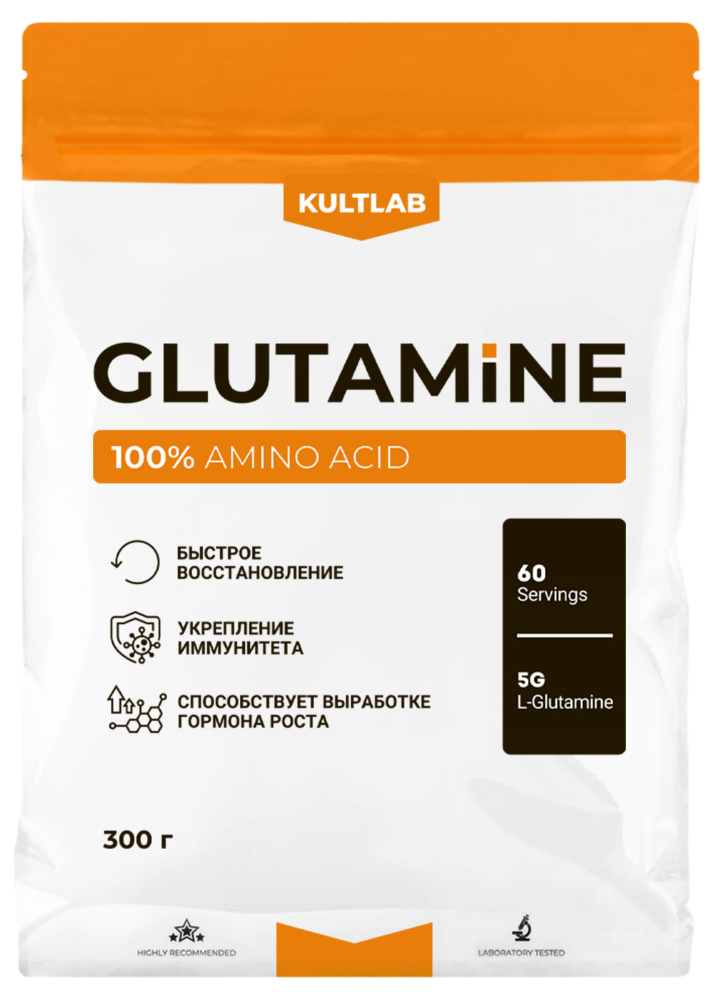 Kultlab Glutamine - прекрасная спортивная добавка, которая позволит набрать мышечную массу и ослабить разрушаюшее воздействие кортизола. В составе этого попрошка нет ничего лишнего - на 5 грамм порошка приходится 5 грамм чистого глютамина!