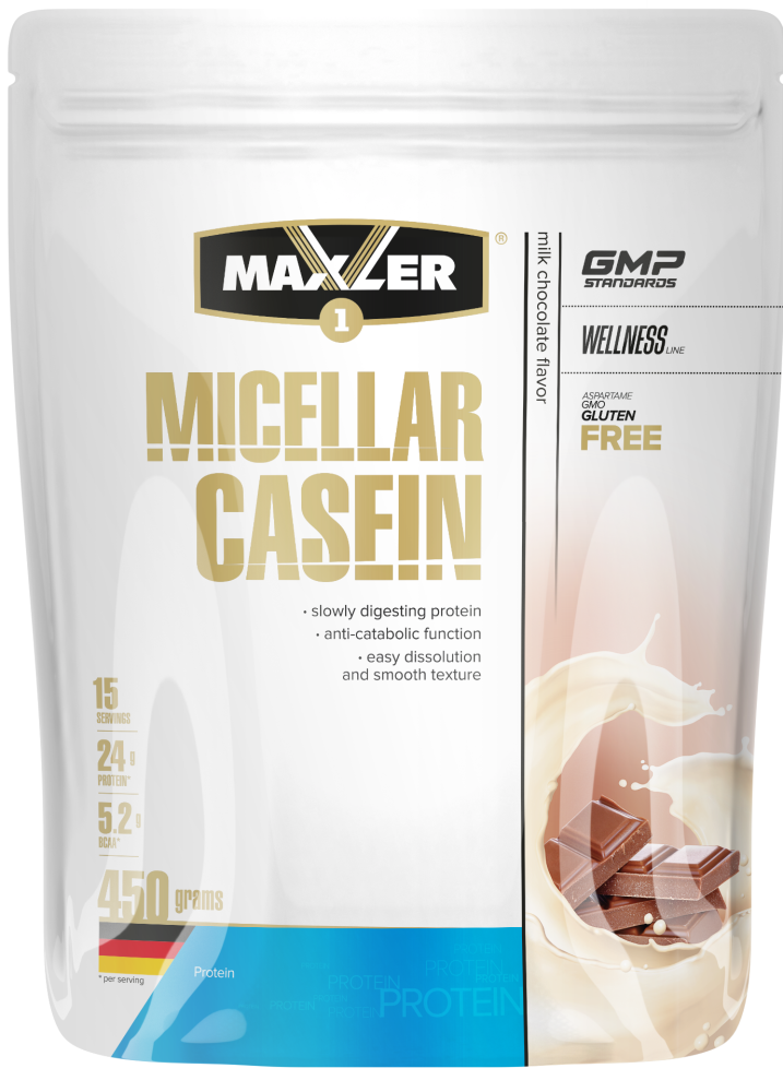 Многие спортсмены стремятся ускорить восстановление мышц и предотвратить их катаболизм во время сна. Именно в этих целях многие принимают казеин –медленно переваривающийся молочный протеин. Главное отличие казеина от сывороточного протеина заключается в том, что казеин усваивается намного дольше. Это значит, что он питает клетки аминокислотами на протяжении длительного периода времени. Многие исследования подтвердили, что казеин помогает ускорить рост мышечной массы, даёт чувство сытости и ускоряет восстановление после тренировок. Новый продукт от Макслер – Micellar Casein – имеет высокое содержание высококачественного протеина, а также БЦАА и Глутамина в каждой порции. Этот продукт производится из натуральных источников белка, имеет нежную кремовую текстуру и натуральный вкус.