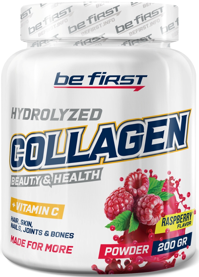 Сollagen hydrolyzed + vitamin C powder от Be First содержит в составе коллаген и витамин С, являющиеся основными элементами, из которых состоит соединительная ткань нашего организма: хрящи, суставы, связки. Прием добавки поддерживает здоровье суставов при больших физических нагрузках, например, высокоинтенсивных силовых тренировках.
