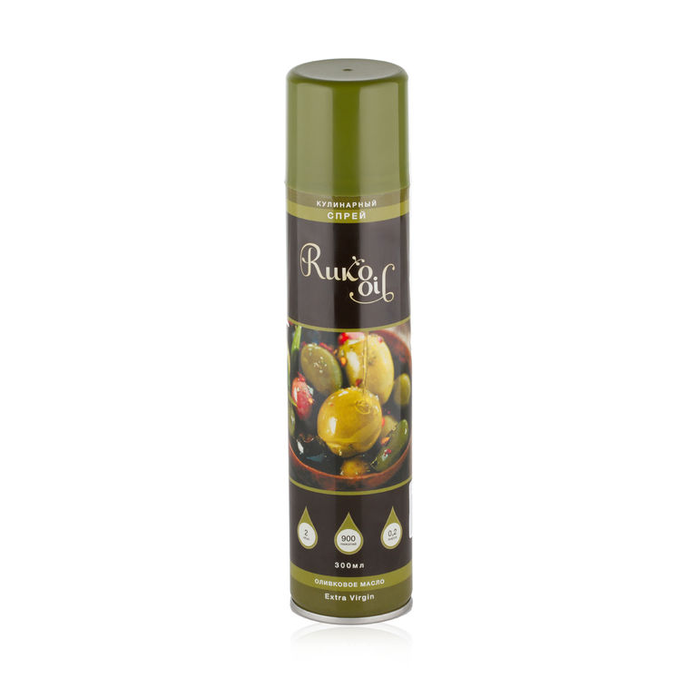 100% оливковое масло, рафинированное дезодорированное, эмульгатор лецитин, газ пищевой бутан пропан упаковочный газ по ГОСТ 21443 (испаряется при выпрыскивании)