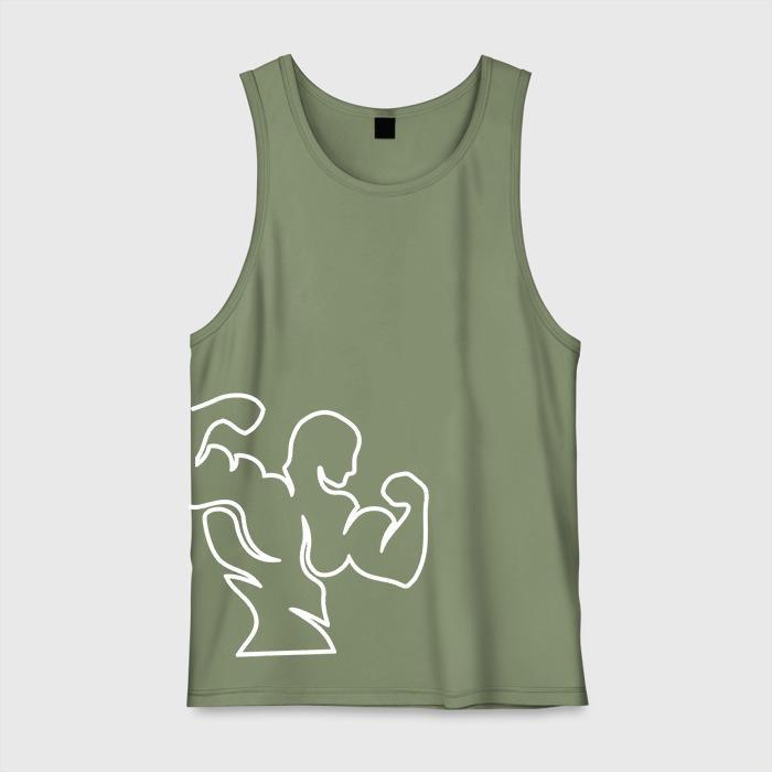 Kultlab Майка-борцовка с белым контурным логотипом сбоку, зелёный