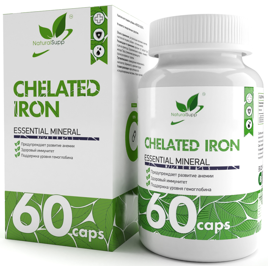 Chelated iron обладает высокой биодоступностью и хорошей переносимостью. Рекомендован для профилактики и лечения латентного дефицита железа, железодефицитной анемии легкой степени тяжести, при снижении работоспособности и общей толерантности к физической нагрузке, наличии мышечной слабости, дистрофических изменений кожи и придатков (ломкость и поперечная исчерченность ногтей, истончение и усиленное выпадение волос).