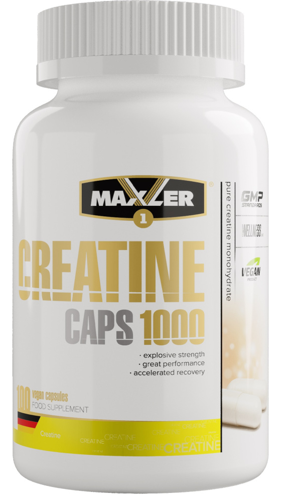 Creatine Caps 1000 – это 100% креатин моногидрат в капсулированной форме. Одна капсула содержит 880мг креатина моногидрата. Креатин моногидрат – это самая распространенная форма креатина. Такая форма имеет максимальное содержание креатина (88%), обладает стабильностью при хранении и термоустойчивостью, не имеет вкуса.
