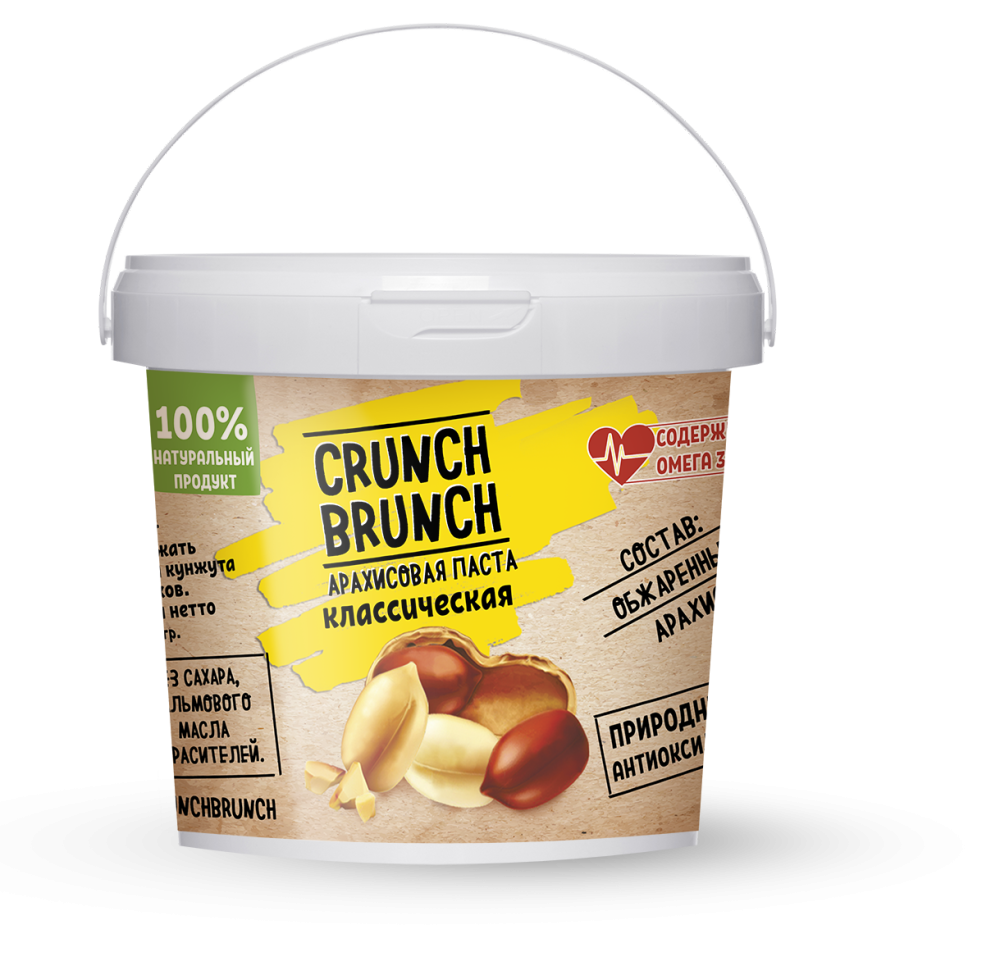 Арахисовая паста Crunch Brunch – это натуральный диетический продукт, который подходит для ежедневного рациона. Благодаря растительному белку, а так же высокому содержанию омеги-6, витаминов и минералов, она будет полезна спортсменам, детям, вегетарианцам и людям всех возрастных категорий. Белок в составе пасты Crunch Brunch питают и насыщают мышцы, углеводы обеспечивают зарядом бодрости и энергии, жирные кислоты помогают в работе сердечно-сосудистой системы и способствуют улучшению мозговой деятельности.