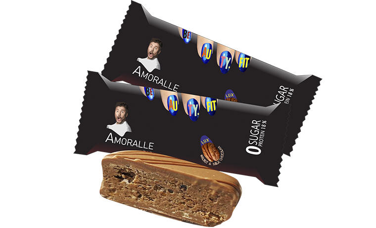 « Протеиновый шоколад» Amoralle – это кондитерский изыск, который выходит из рамок функционально питания и может конкурировать со сладостями премиум класса традиционного рациона. При этом БЖУ соответствует стандартам спортивного питания.