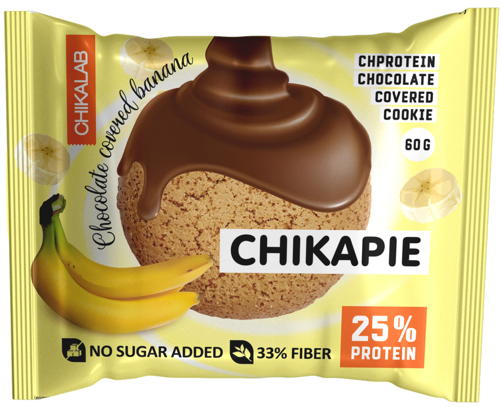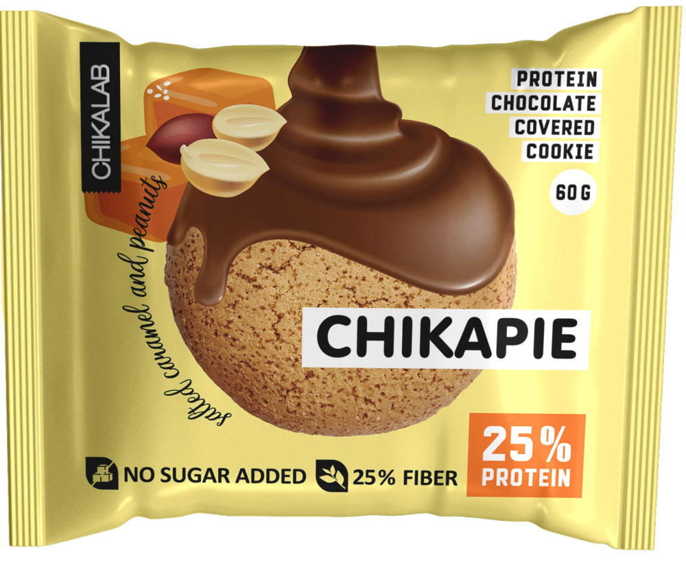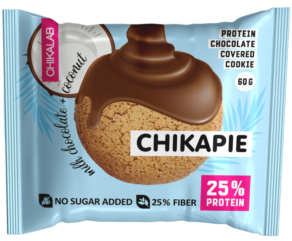 CHIKAPIE — новое протеиновое печенье, покрытое молочным шоколадом с удивительной начинкой внутри, конечно же, без сахара!