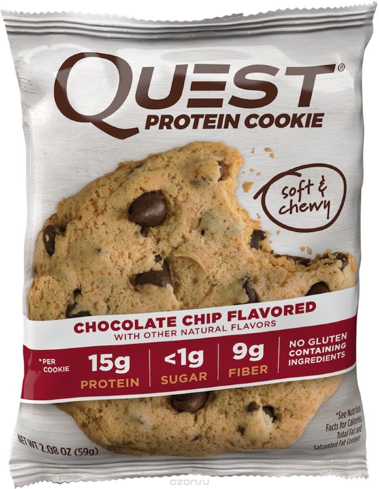 Протеиновое печенье без сахара Quest Cookie - привычный вкус рассыпчатого мягкого печенья с идеальным пищевым профилем для здоровой диеты: