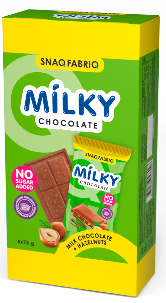Новинка от SNAQ FABRIQ - нежный молочный шоколад без сахара MILKY в формате плитки. Без сахара. Без пальмового масла. С высоким содержанием клетчатки.