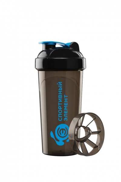 В комплект входит: бутылка, крышка с носиком для питья, пластиковая сетка для размешивания, одноцветный логотип.