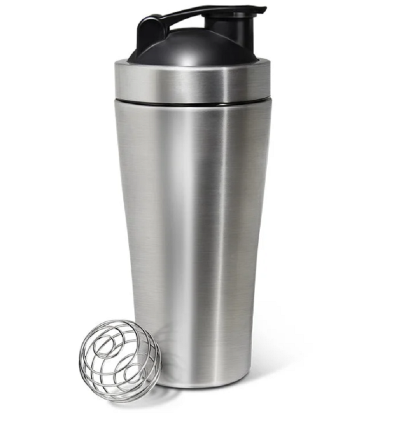 Этот спортивный металлический шейкер от Be First на 800 мл изготовлен из высококачественной пищевой нержавеющей стали. Это дает шейкеру ряд преимуществ. Например, большую прочность. Возможно, это не кажется особенно важным, но с другой стороны – при падении на пол металлический шейкер останется целым в любом случае. Еще один весомый плюс – высокая плотность и полная инертность металла. Металлический шейкер для спортивного питания не впитывать запах даже очень сильно ароматизированных продуктов и даже после многих месяцев постоянного использования.