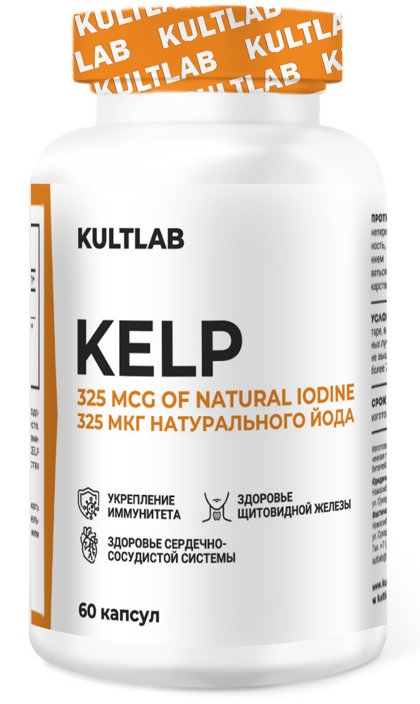 KELP - это активная добавка с келпом (бурой водорослью). Это растение - кладезь полезных веществ. Содержит 45 минералов, 16 аминокислот, 12 витаминов, калий, кальций, железо, фосфор. Но ценится KELP во всем мире из-за содержания большого количества йода в легкоусвояемой форме.