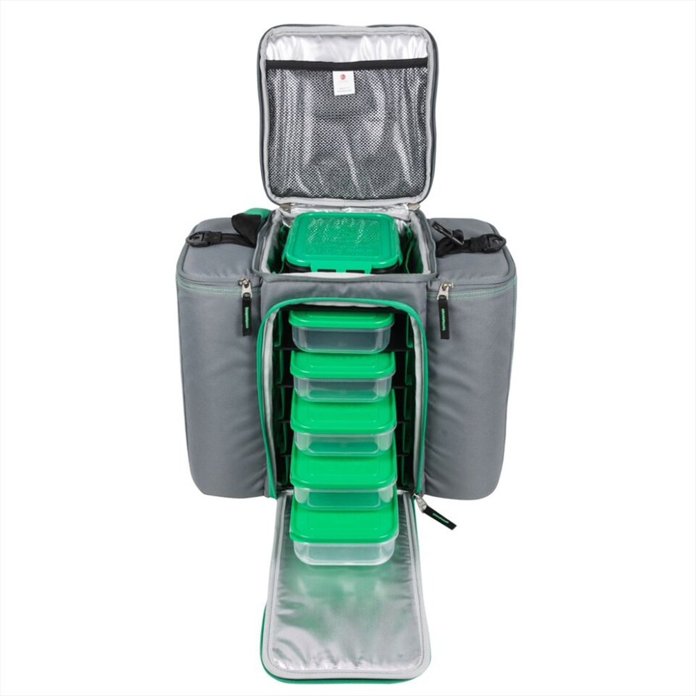Innovator 500 имеет в наличии 5 контейнеров для еды + 1 спортивный контейнер с 2 охлаждающими гелевыми пакетами, а также сумка оснащена эргономичной лямкой.
