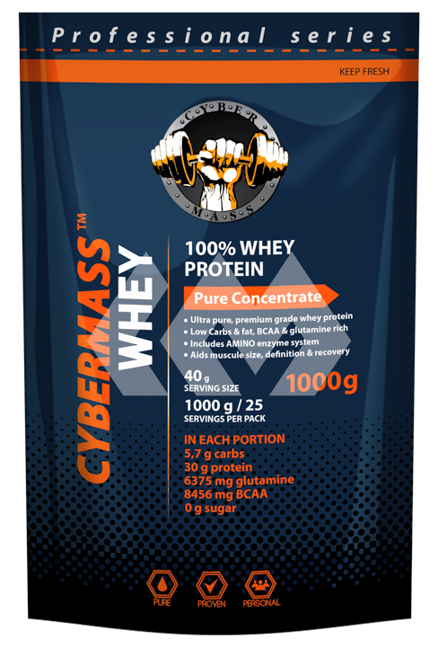 CYBERMASS WHEY приготовлен из 100% сывороточного концентрата. Протеин насыщен незаменимыми аминокислотами в максимально биодопустимой форме.