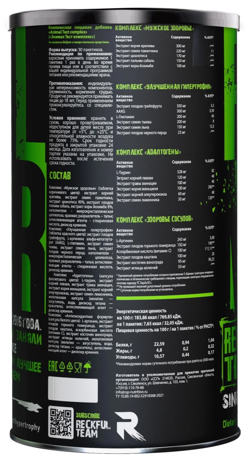 Reckful® Monster Test — мощный мультикомплекс в саше, разработанный для мужского здоровья, усиления тестостерона, гормонального баланса, прироста мышечной массы и выносливости. В составе — 5 рабочих комплексов на каждый день, каждый из которых решает конкретную задачу: