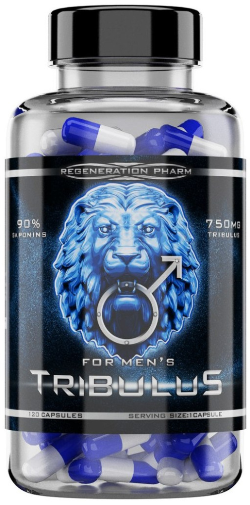 Трибулус Террестрис – это растение семейства Парнолистниковых, который является натуральным источником гормона тестостерона. Активные вещества растения увеличивают лютеинизирующие гормоны, повышая уровень тестостерона. За счет повышенной выработки тестостерона усиливается рост мышечной ткани и увеличиваются силовые показатели, а также за счет веществ, стимулирующих андрогенные рецепторы, увеличивается потенция. Поэтому Tribulus от RegPharm состоит исключительно из натуральных компонентов. 120 капсул в Tribulus от RegPharm содержат 90 % сапонина(максимальное содержание протодиосцина) и всю пользу натуральных компонентов!