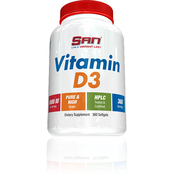 Vitamin D3 SAN содержит 1000 МЕ витамина D3 на порцию. Это количество витамина D3 помогает вашим костям сохранить прочность, предупреждает дефицит кальция, который поддерживает здоровье ваших костей и зубов, и ликвидирует дефицит витамина D3 в организме.