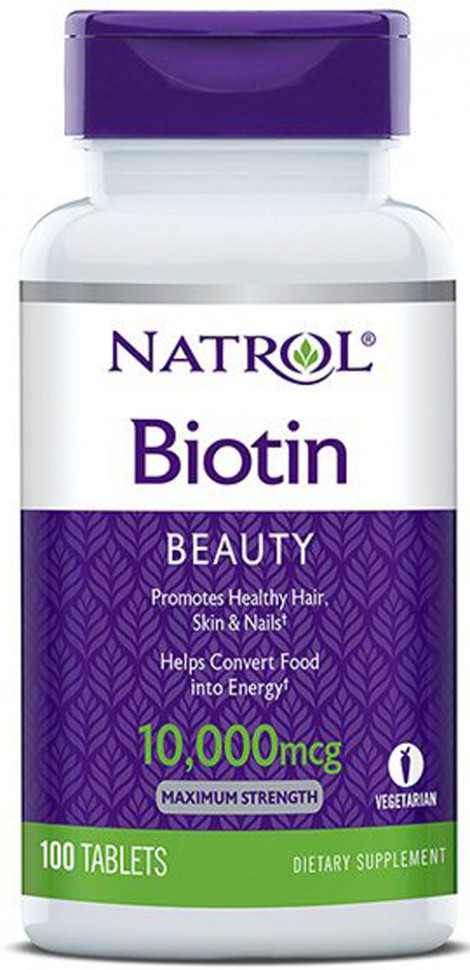 Biotin от Natrol ( витамин H, витамин В7), относится к витаминам группы Б, является одним из лучших витаминов для волос , кожи, ногтей. Биотин хорош тем что он водорастворимый витамин, и передозировка им невозможна, его организм выводит с мочой. Биотин сделает Ваши волосы шелковистыми, блестящими и крепкими. Косметологи его называют витамином красоты, так как биотин входит во многие косметические средства.