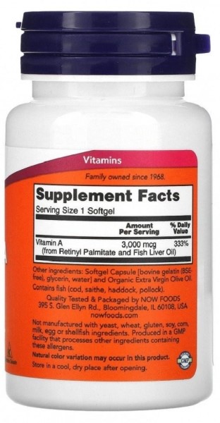 Добавка Vitamin A от Now Foods производится из жира рыбьей печени, что является натуральным продуктом при своей низкой цене.