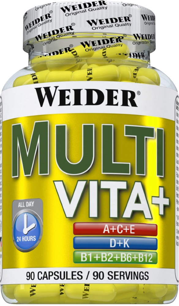 Витамин С, желатин, витамин Е, инулин, ниацин, пантотеновая кислота, высвобождающий агент: магниевые соли жирных кислот; рибофлавин, витамин B6, тиамин, бета-каротин, красители: E104, E171, E172; экстракт перца, фолиевая кислота, биотин, витамин К, витамин B12, витамин D3. Может содержать следы лактозы, глютена, сои и яичного белка.