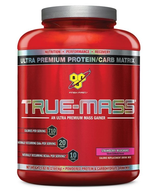 BSN True-mass для набора чистой мышечной массы, а также для тех, кому нужно больше калорий в связи с ускоренным обменом веществ. В состав True-mass входят: протеиновая смесь, питающая ваши мышцы в течение 8 часов, комплексные углеводы для поддержания энергетики организма, триглицериды со средними цепочками (MCT) и незаменимые жирные кислоты (EFA) для поддержки здоровья и гормональной системы. Также наш гейнер дополнительно усилен BCAA, пищевыми волокнами, пептидами глютамина и глютамином альфа-кетолютаратом(AKG).