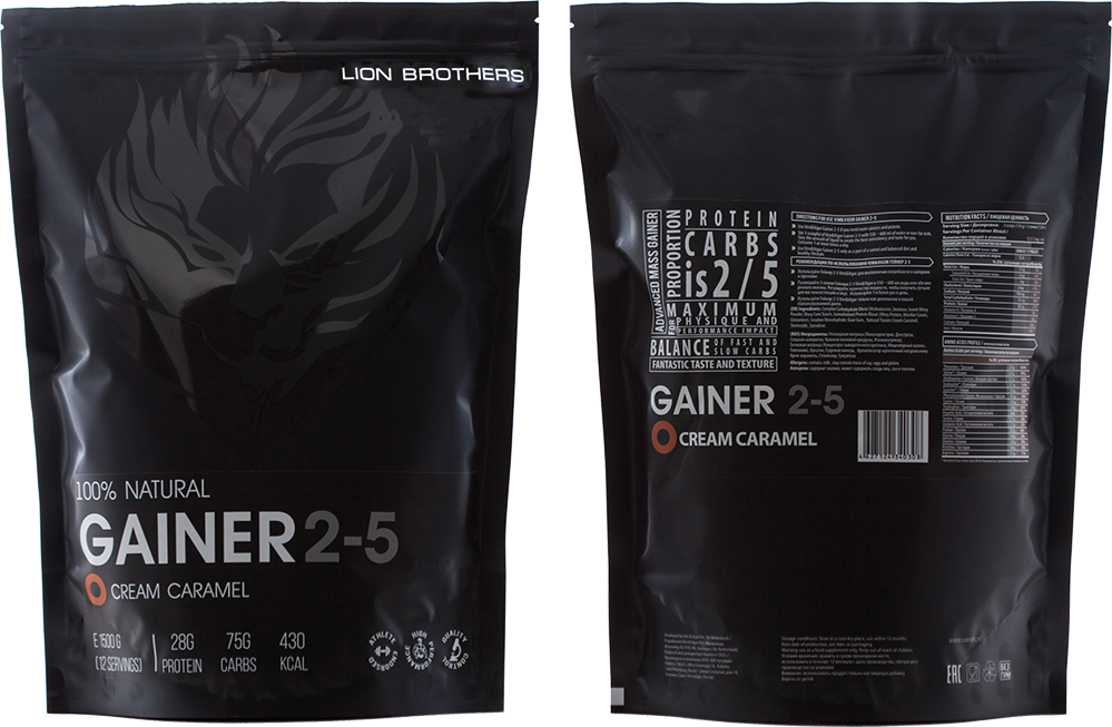 Активные занятия спортом и желание набрать массу требуют невероятного количества калорий. Гейнер 2-5 Lion Brothers – это эффективное решение для набора массы и наилучшее количество белка. В Гейнере 2-5 Lion Brothers 425 калорий и 28 грамм белка на порцию. Соотношение белков к углеводам составляет 2 к 5. Рекомендуется для людей с высоким и средним уровнем метаболизма.