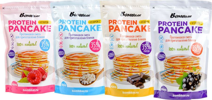 Насыщенные протеином блинчики от BOMBBAR легко готовятся и прекрасно подходят для питательного завтрака или десерта. Продукт является отличной высокобелковой альтернативой обычным блинчикам и подходит для тех, кто следит за своим весом и контролирует потребление калорий. Блинчики со вкусами малины, творога, черной смородины, шоколада внесут в рацион разнообразие, пользу и удовольствие!