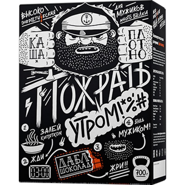 Энергии много не бывает! Каша для мужиков «Пожрать утром» не только насытит тебя как минимум до обеда, но и внесет разнообразие в каждое утро. Хочется экзотики? Начни день с «Силой банана». Соскучился по любимым с детства десертам? Наслаждайся «Дабл шоколадом» и «Ягодным миксом»!
