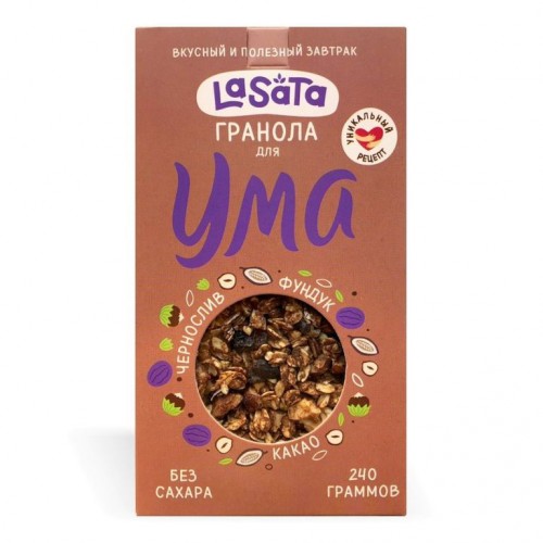 Аппетитная гранола с добавлением зеленой гречки, какао, фундука и чернослива. Шоколадное удовольствие на завтрак и перекус!