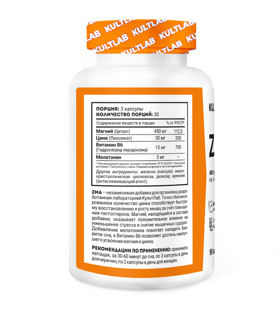 Принимайте по три капсулы 1–3 раза в день. Последний прием должен быть за 30–60 мин. до сна. Для достижения наилучших результатов лучше не принимать ZMA вместе с пищей или добавками, содержащими кальций.
